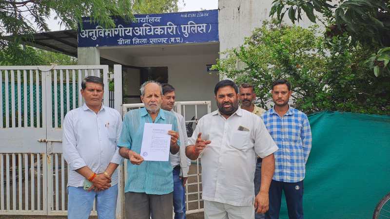 एसडीओपी को आवेदन देने पीड़ित किसान के साथ पहुंचे अन्य किसान।