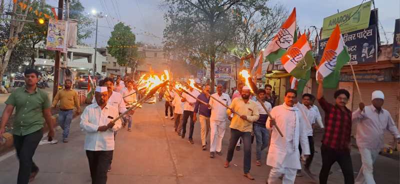 कांग्रेसियों ने निकाला मशाल जुलूस