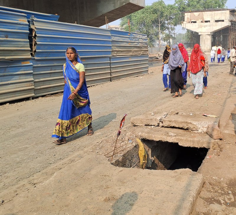 क्षतिग्रस्त नाली में गिर रहे राहगीर