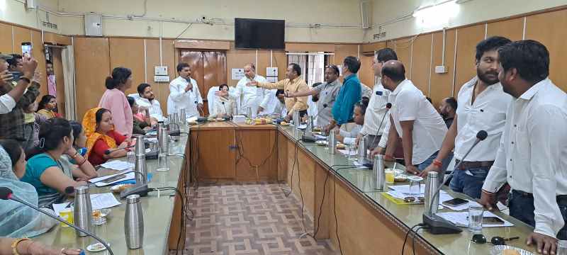 बैठक के दौरान मुद्दों को लेकर बहस करते हुए पार्षद