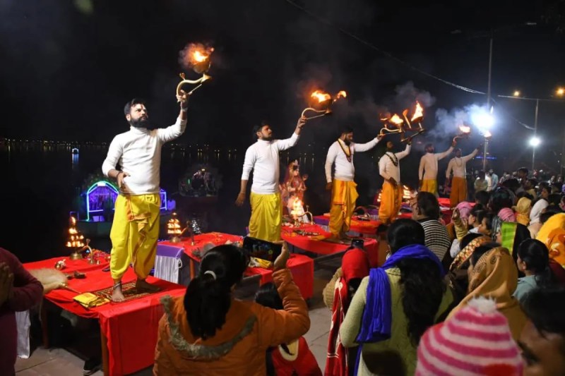 लाखा बंजारा झील संरक्षण के लिए आयोजित हो रही गंगा आरती में सोमवार को बड़ी संख्या में श्रद्धालुओं की भीड़ उमड़ी। चकराघाट परिसर में गंगा आरती के दौरान गंगा मैया के जयकारे गूंजे। यह आयोजन श्रद्धा, आस्था और जनजागरूकता का एक सशक्त माध्यम बन चुका है। गंगा आरती में शहर के विभिन्न वार्डों से बड़ी संख्या में महिलाएं, पुरुष, बच्चे, युवा एवं बुजुर्ग श्रद्धालु पहुंचे। ठंड को देखते हुए नागरिकों की सुविधा के लिए अब प्रत्येक सोमवार गंगा आरती का समय शाम 7 बजे निर्धारित किया गया है।