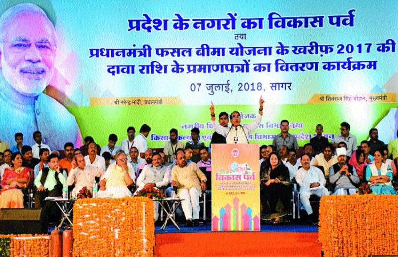 उन्होंने सभा में जनता से पूछा कि यह सरकार चौथी बार भी आनी चाहिए या नहीं? कार्यक्रम में मुख्यमंत्री चौहान ने भोपाल, इंदौर, जबलपुर, ग्वालियर, इटारसी, रीवा समेत १३ नगरीय निकायों में करीब १४ हजार करोड़ के इ-लोकार्पण व शिलान्यास भी किए और वहां की जनता से बात की। साथ ही सागर को 'साडा हकÓ दिया। यानी मुख्यमंत्री ने शहर की बहुप्रतीक्षित मांग सागर विकास प्राधिकरण की घोषणा की। यही नहीं जिले में कर्रापुर के रूप में एक नई नगर पंचायत की घोषणा भी सीएम ने मंच से की।
