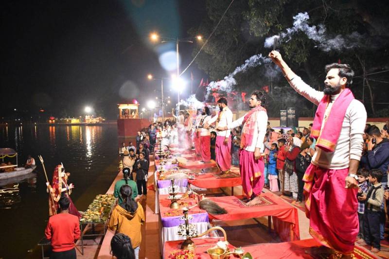 लाखा बंजारा झील किनारे श्रद्धालुओं की उपस्थिति में मंत्रोच्चार के साथ गंगा आरती का आयोजन हुआ। इस सोमवार हुई गंगा आरती में 56 व्यंजनों का महाभोग लगाया गया। झील को साफ-स्वच्छ रखने, जल संरक्षण, जल संवर्धन और प्रकृति संरक्षण के लिए निगमायुक्त राजकुमार खत्री की पहल शुरू हुई गंगा आरती शहर के नागरिकों की आस्था और श्रद्धा का केंद्र बन रही है। सोमवार की शाम श्रद्धालुओं का चकराघाट पर पहुंचना शुरू हो गया था। गंगा आरती में शामिल होने महिला-पुरुष व युवा बड़ी संख्या में पहुंचे। आरती के दौरान श्रद्धालु हरीश बड़ोनिया, योगेश बड़ोनिया ने मां गंगा को 56 व्यंजनों का महाभोग लगाने की व्यवस्था की। एक अन्य श्रद्धालु ने मां गंगा की प्रतिमा को आकर्षक श्रंृगार सामग्री से सजाया। आरती के दौरान लगाया गया महाभोग सभी उपस्थित नागरिकों में वितरित किया गया।