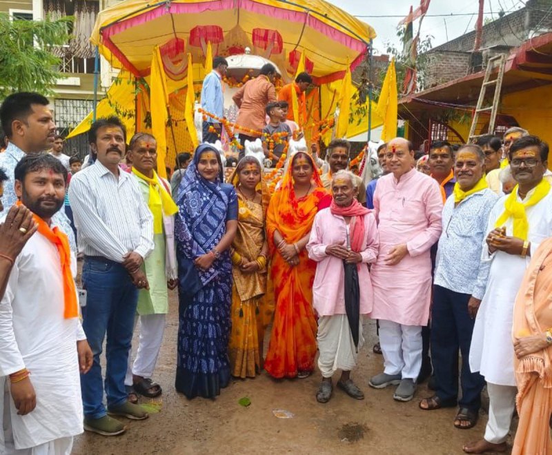 रजाखेड़ी मकरोनिया मेें शोभायात्रा निकाली।