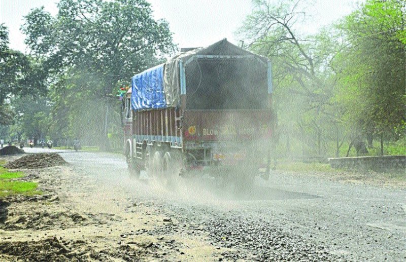 बारिश में डामर बहने के बाद गिट्टियों में तब्दील हुआ कबूला पुल से परेड मंदिर के बीच नेशनल हाइवे २६ का एक्सटेंशन वाहन चालकों की मुसीबत बन गया है। गढ्डों को छिपाने के लिए लोनिवि द्वारा बरसात में डाली गई मिट्टी के कारण अब वाहन गुजरने के बाद सड़क पर धूल के गुबार छाए रहते हैं। सड़क पर उठते धूल के गुबारों के बीच से होकर ही लोगों को गुजरना होता है जिससे आसपास के रहवासी और वाहन चालकों को काफी मुश्किलों का सामना करना पड़ रहा है। कबूला पुल से डीएनसीबी स्कूल के बीच स्थित घरों में रहने वाल सदर के रहवासियों को धूल के कारण आंखों की एलर्जी, खांसी जैसी दिक्कतों परेशान कर रही हैं।