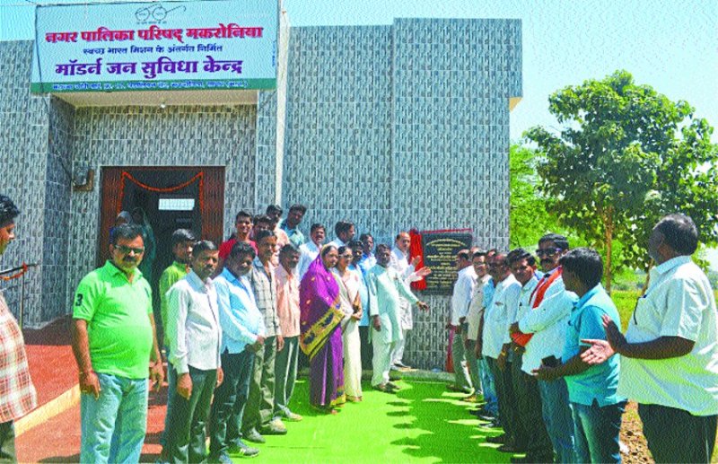 मकरोनिया के महात्मा गांधी वार्ड में 17 लाख रुपए से बनाए गए आदर्श सार्वजनिक शौचालय का लोकार्पण नरयावली विधायक प्रदीप लारिया, नपा अध्यक्ष सुशीला रोहित, भाजपा नेता संतोष रोहित आदि ने किया।