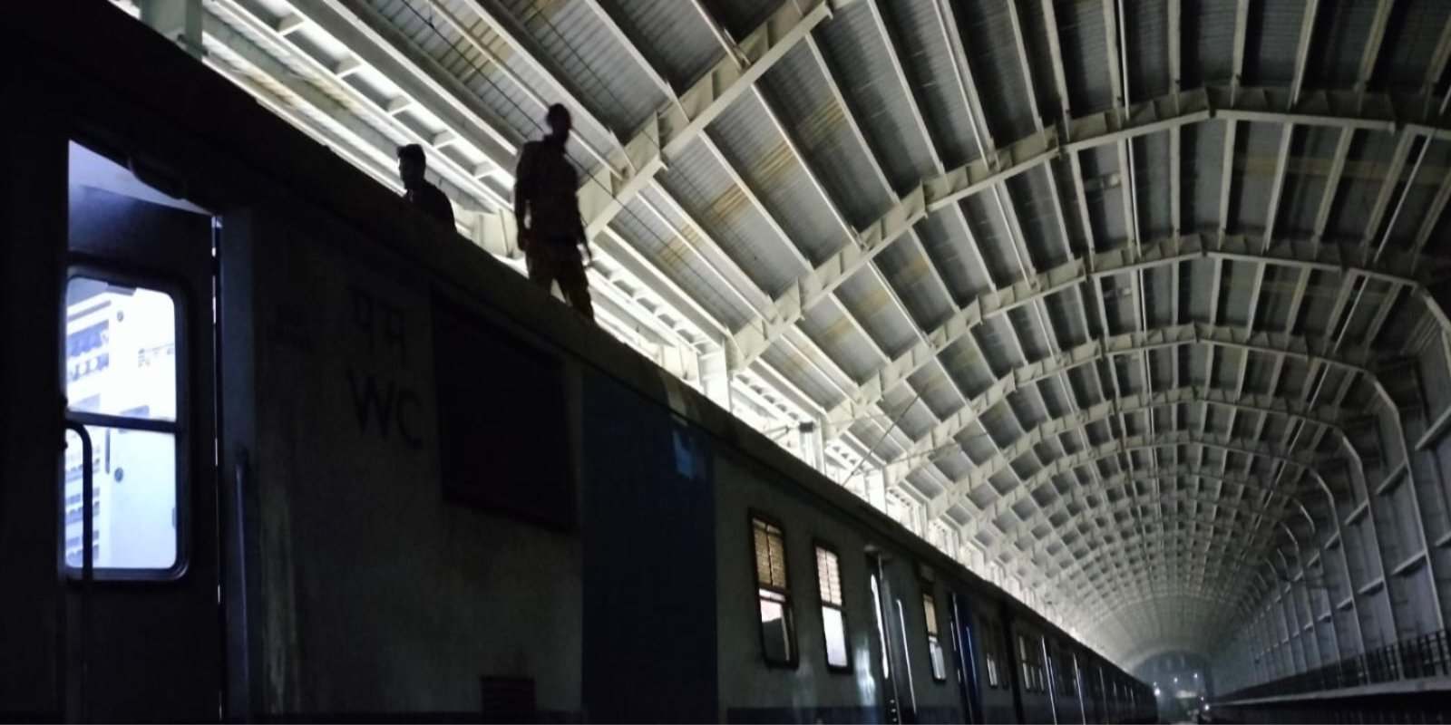 दूसरे शेड से आ रहे उजाले में काम करते हुए कर्मचारी
