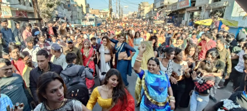Eunuchs came out of the main roads dancing and singing, offered a crown to Maa Jageshwari