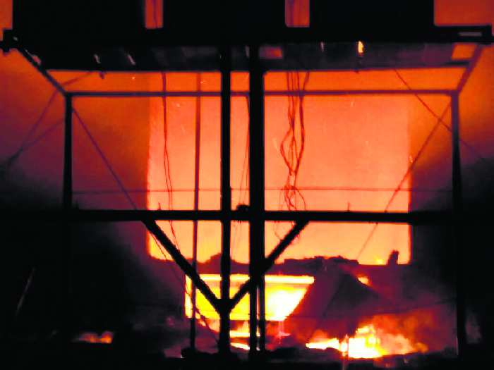 सागर. शहर के मुख्य मार्केट में स्थित अलंकार टॉकीज में मंगलवार देर रात शो में उस समय भगदड़ की स्थिति बन गई जब अचानक परदे में आग भड़क उठी। फिल्म कहां चल रही थी, यह भूल लोग जान बचाकर भागने लगे। इससे हड़कंप मच गया, जिस समय आग लगी तब फिल्म मुजफ्फर नगर का शो चल रहा था और टॉकीज में 20-25 लोग मौजूद थे। आग की लपटों से सिनेमा हॉल से लोग दहशत में भागने लगे।