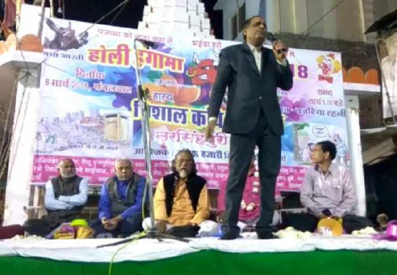 रहली (सागर). कवियों द्वारा कविता सुनाने से पहले ही लोग हंस रहे थे। नजारा ही कुछ ऐसा था। दरअसल, रंगपंचमी के अवसर पर रहली के गांधी चौक बाजार में होली हंगामा और हास्य कवित सम्मेलन का आयोजन किया गया था। अंकेश हजारी मित्र मंडल द्वारा आयोजित कार्यक्रम में जमकर हास्य रस की बौछार हुई।