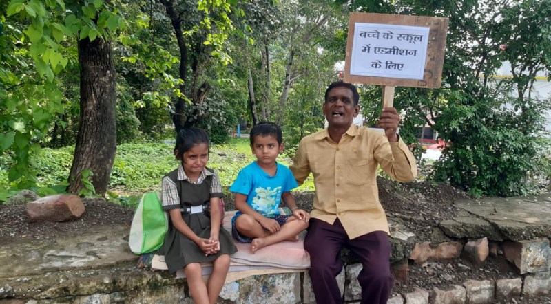 सागर. एक ओर आर्थिक तंगहाली, वहीं अपने बेटे के एडमिशन के लिए दर-दर भटक रहा पिता। नन्हीं बेटी की आंखों में भी आंसू। पूरा परेशान परिवार। बेटे का स्कूल में एडमिशन कराने भीख मांगने के लिए भी तैयार। यह कहानी सदर क्षेत्र में रहने वाले वीरेंद्र यादव की। जो बेटे को स्कूल में दाखिला ना मिलने की वजह से सोमवार को कलेक्टर कार्यालय के सामने पहुंच गए। यहां बेटी और बेटा के साथ हाथ में तख्ती लेकर अधिकारियों से एडमिशन दिला दो की गुहार लगा रहे थे। दरअसल वीरेंद्र यादव की बेटी शासकीय स्वामी विवेकानंद माध्यमिक विद्यालय सदर में पहली कक्षा में पढ़ाई करती है। वीरेंद्र की आर्थिक स्थिति ठीक ना होने की वजह बेटे को भी इसी स्कूल में दाखिला दिलाना चाहते हैं।