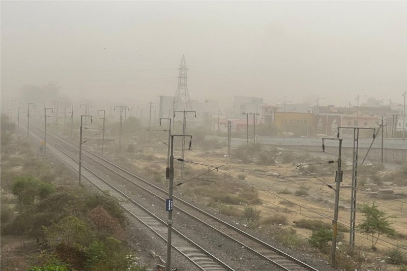 आंधी चलने से छाई धूल की धुंध