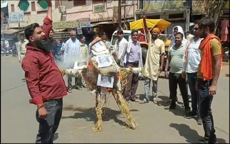 पुतला जलाते हुए