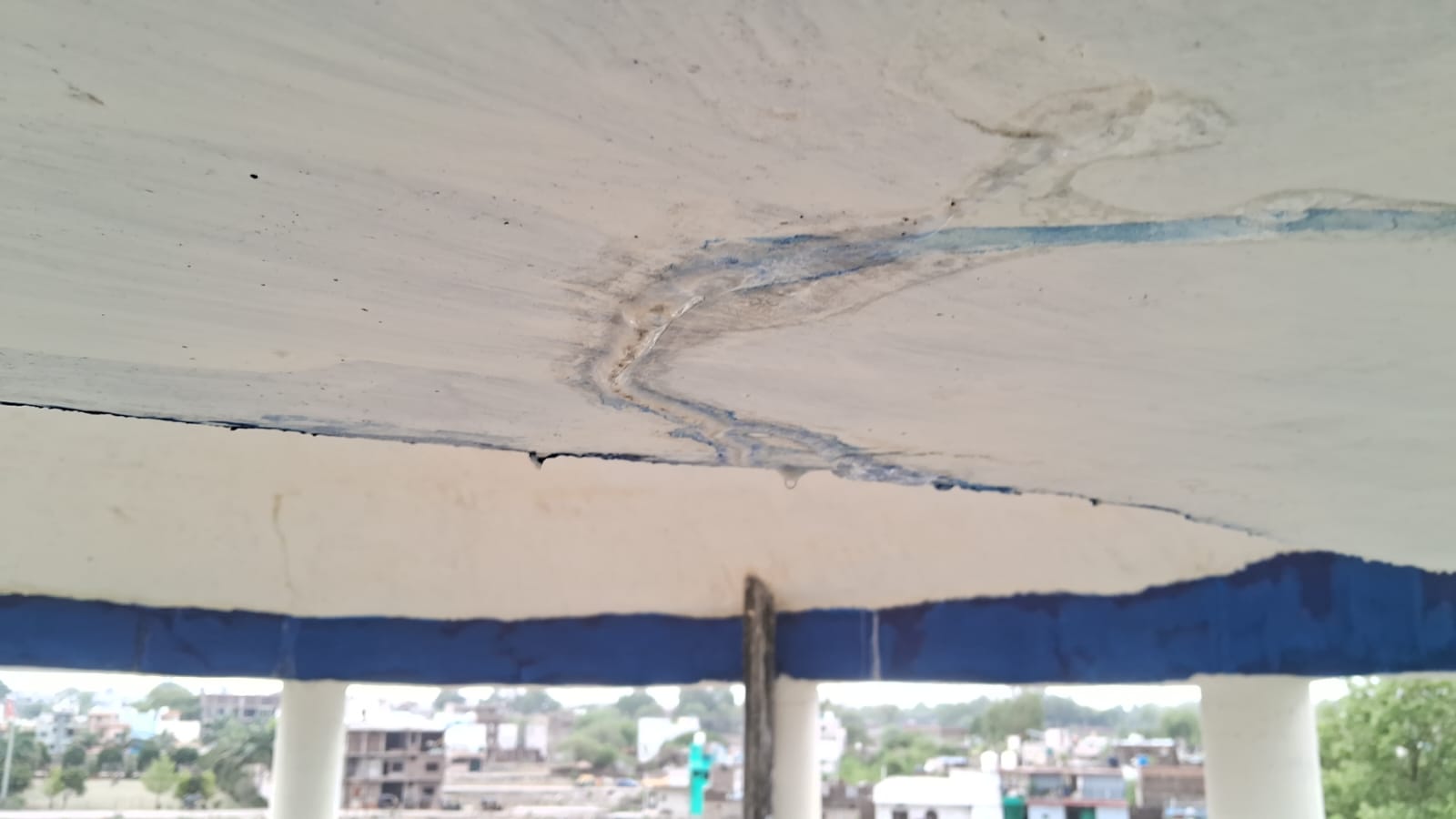 टंकी के नीचे आई दरार से लीक होता पानी