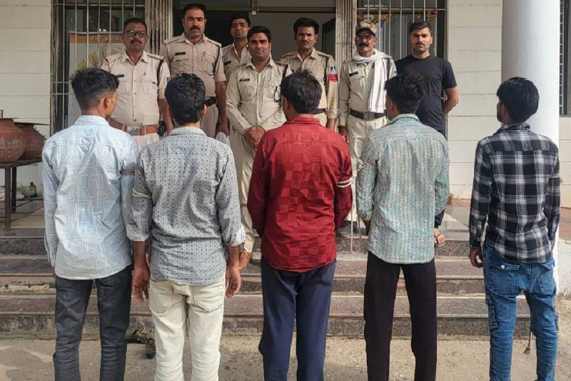 शराब पीने के लिए रुपए न देने पर एक व्यक्ति के साथ उसकी पत्नी, बेटियों के सामने बीच सड़क पर मारपीट करने वाले 5 आरोपियों को पुलिस ने गिरफ्तार कर लिया है। पुलिस के अनुसार 13 मई की रात करीब एक बजे दिनेश यादव ने थाने में शिकायत दर्ज कराई कि वह मारोतखेड़ा गांव शादी समारोह में शामिल होने गए थे, रात में अपनी पत्नी व दो बेटियों के साथ वापस अपने गांव कानीखेड़ी लौट रहे थे। बराज व कानीखेड़ी के बीच रास्ते में गांव के राहुल यादव, अजय यादव, गोलू यादव व श्यामपुरा गांव निवासी श्याम यादव, रामअवतार यादव और देव सिंह यादव मिले, जिन्होंने ने रास्ता रोककर शराब पीने के लिए रुपए मांगे, जब दिनेश ने रुपए देने से मना किया तो आरोपियों ने पत्नी, बच्चों के सामने उसके साथ मारपीट की। पुलिस ने आरोपियों के खिलाफ मामला पंजीबद्ध करते हुए विवेचना में लेकर तलाश शुरू की।