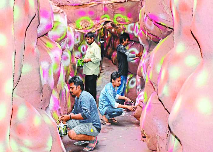 समिति के लोग एक माह से मेहनत करके झांकी को सजा रहे हैं। यहां माता के दर्शनों के लिए जाने के लिए शेर का मुंह बनाया गया है। जिसमें श्रद्धालु प्रवेश करेंगे। गुफा में बाबा अमरनाथ, आकाशगंगा, ज्वालादेवी और वैष्णो देवी के दर्शन कराए जाएंगे। गुफा को 1500 फीट लंबी बनाया गया है। कमेटी के सदस्यों ने बताया कि एक माह से यहां सदस्य दिन-रात मेहनत करके झांकी को तैयार कर रहे हैं। माता झरनों के बीच विराजमान होंगी। बाबा अमरनाथ के दर्शन के लिए बर्फीले पहाड़ से होकर श्रद्धालु पहुंचेंगे।