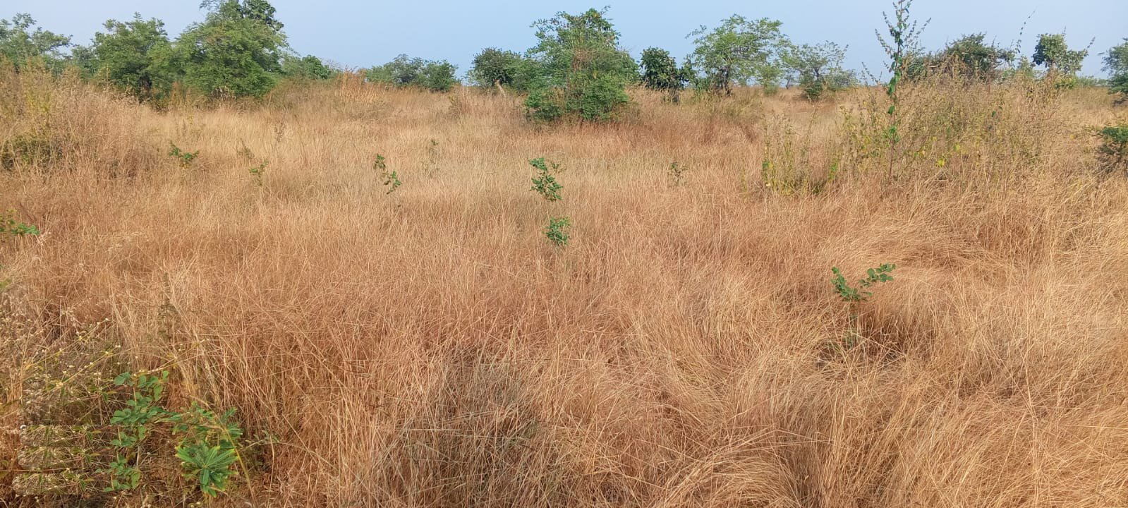 सूखी घास के बीच नजर आते पौधे
