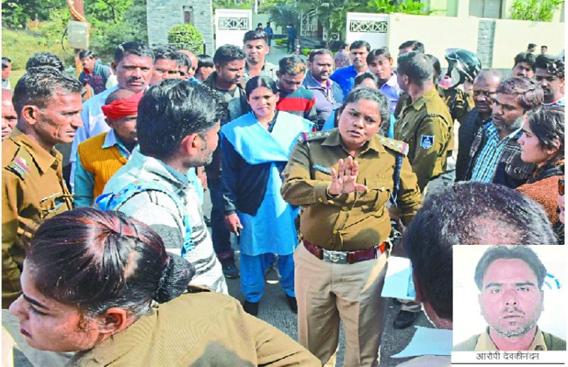 सिविल लाइन टीआइ संगीता ङ्क्षसह ने स्कूल पहुंचने के बाद पहले मासूम के माता-पिता और फिर प्राचार्या रितु जडि़या से बात कर सीसीटीवी फुटेज लिए। टीआइ जब थाने जाने लगीं तो परिजनों ने कार्रवाई में टालमटोल की शंका के चलते हंगामा कर जाम लगा दिया। परिजन व अन्य अभिभावक मासूम के साथ अशोभनीय हरकत करने वाले कर्मचारी को सामने लाने की बात पर अड़े थे, लेकिन पुलिस व्यवस्था गड़बड़ाने की आशंका के चलते उसे सीधे लोगों के सामने नहीं लाना चाहती थी। पुलिस ने संदेही को थाने पहुंचाया व फुटेज वाट्सऐप के जरिए भेजकर बच्ची से पहचान की पुष्टि कर देवकीनंदन अहिरवार (३२) पर अपराध दर्ज कर लिया।