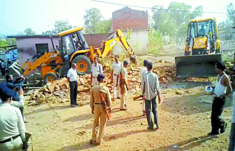 सागर. छात्रा के आत्मदाह पर छेड़छाड़ के आरोपियों की गिरफ्तारी के बाद पुलिस ने रविवार को सख्ती बरतते हुए उसका सरकारी जमीन पर अतिक्रमण ध्वस्त कर दिया। महिला अपराध के बाद आरोपी के विरुद्ध जिले में सख्ती का यह पहला बड़ा मामला है। छेड़छाड़ के आरोपियों को जेल भेजने के दूसरे दिन पुलिस-प्रशासन की टीम दलबल सहित खुरई के बरोदिया नौनागिर पहुंची और करीब ५ हजार वर्गफीट सरकारी जमीन पर पिलर खड़े करके किए गए कब्जे को