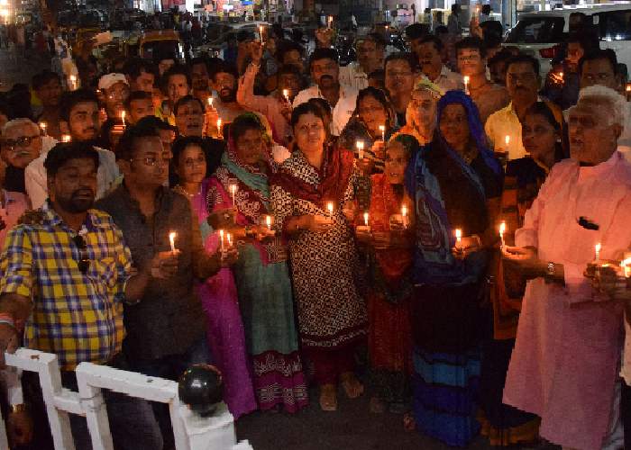सागर. प्रदेश की राजधानी भोपाल में गैंगरेप की घटना के विरोध में मंगलवार को कांग्रेस ने मानव शृंखला बनाकर व कैंडल जलाकर विरोध प्रदर्शन किया। शहर उपाध्यक्ष मुन्ना चौबे के नेतृत्व में हुए इस प्रदर्शन में आरोपियों का फांसी की सजा की मांग की गई।