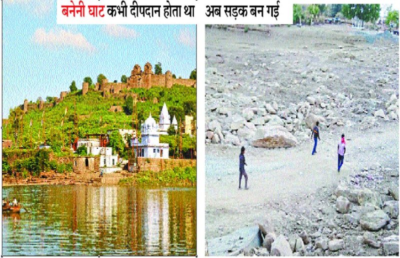 धर्मेन्द्र सिंह राजपूत@ राहतगढ़. नगर व क्षेत्र की एकमात्र जीवन दायिनी बीना नदी अथाह जलराशि के लिए जानी जाती थी। इस बार यह सूख चुकी है। बनेनी घाट पर महिलाएं दीपदान करती थीं अब बूंद भर पानी नहीं बचा। यहां आमजन ने आने-जाने का आम रास्ता ही बना लिया।