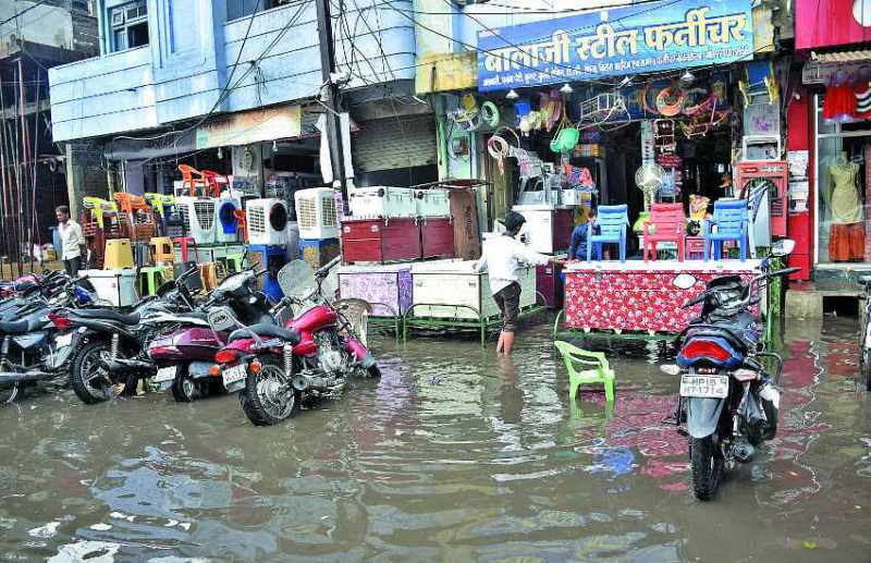 बरसात में दुकानों में पानी भर जाता है। साथ ही कटरा, काकागंज, वल्लभनगर और भगतसिंह वार्ड में भी पानी भर गया।