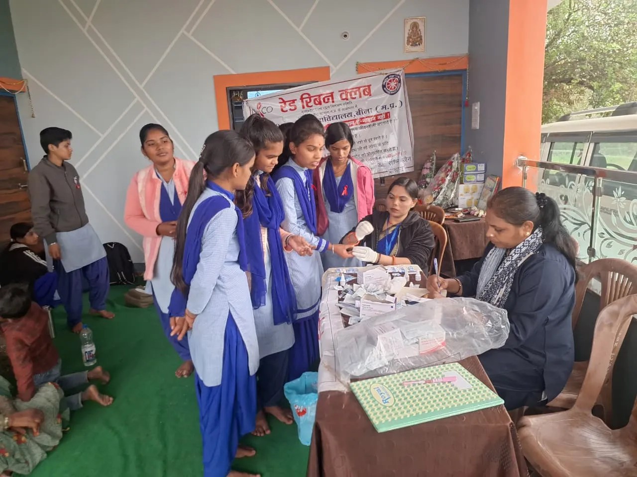 छात्राओं का स्वास्थ्य परीक्षण करते हुए