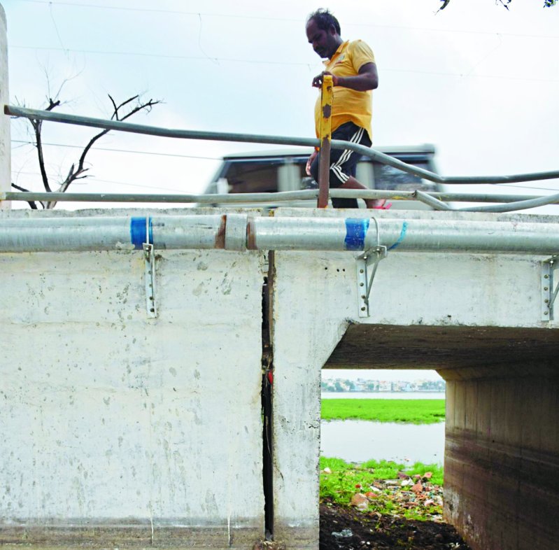 संजय ड्राइव के पुल में आई दरार,पाइप का जोड़ अपने स्थान से खिसक गया