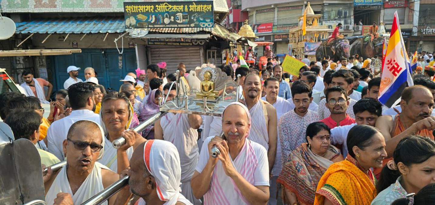 महाराज ने कहा कि जुलूस में एक रथ दो हाथियों के सहारे चल रहा था। लोगों ने कहा श्याम भंडार के सामने यह निकलेगा नहीं, लेकिन गुरुदेव ने चमत्कार किया। जनता को दूर किया 30 सेकंड में वह बगैर किसी को छुए हुए अंदर के मार्ग पर चला गया। लोगों को भरोसा नहीं था कि ऐसा कैसे हो गया। जुलूस का संचालन और अन्य धार्मिक क्रियाएं प्रतिष्ठाचार्य प्रदीप भैया अशोकनगर ने कराई।दस हजार लोगों की हुई भोजन व्यवस्थापूर्व विधायक सुनील जैन और उनकी पत्नी निधि जैन ने दस हजार से अधिक लोगों को अपने परिवार की ओर से भोजन की व्यवस्था कराई। सुनील जैन नेताजी कानपुर ने 57 वाटर कूलर सरकारी दफ्तरों में सागर जिले में लगवाए हैं। इस प्रयास के लिए मंच से उनका सम्मान हुआ। जुलूस में विधायक शैलेंद्र जैन, मुकेश जैन, जय कुमार जैन, राजकुमार जैन, ऋ षभ जैन, देवेन्द्र जैन, नेवी जैन, मनीष नायक, चक्रेश जैन, आशीष जैन, प्रशांत जैन, राजकुमार मिनी, रोहित जैन बिलहरा, अंकित नेता, प्रशांत सनौधा, विशाल नरयावली, अंकुश बहेरिया, सुरेन्द्र जैन, प्रदीप जैन, हर्ष जैन सहित सभी 60 जैन मंदिरों के अध्यक्ष, मंत्री पदाधिकारी एवं जैन समाज की सभी संस्थाओं के लोग उपस्थित थे।