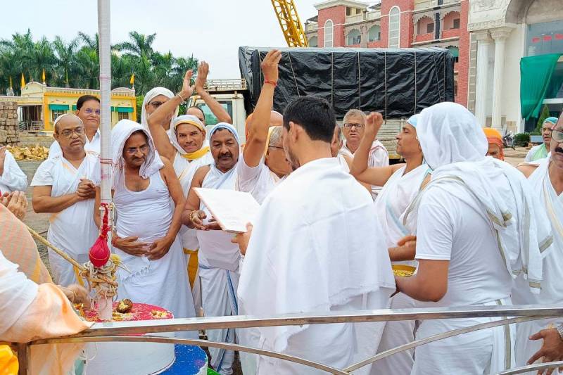 अष्टानिका पर्व के अवसर पर भाग्योदय तीर्थ में आचार्य समय सागर के आशीर्वाद से मुनि विमल सागर ससंघ के सान्निध्य में सिद्ध चक्र महामंडल विधान किया जा रहा है। विधान के पहले दिन गुरुवार को पात्रों का चयन हुआ और ध्वाजारोहण किया गया। प्रमुख पात्रों में श्रीपाल मैना सुंदरी देवेन्द्र जैन, सौधर्म इंद्र कमला, प्रकाश जैन, कुबेर इंद्र महेश बिलहरा, राहुल जैन दर्शनी और महायज्ञ नायक अनिल जैन व ज्योति प्रदीप पड़ा बने हैं। शांतिधारा संतोष जैन, राजेश जैन, लाल जैन, अनुज जैन, प्रेमचंद सौरभ व ऋषभ जैन बांदरी ने की। विधान के प्रारंभ में घटयात्रा भी निकली। जो भाग्योदय परिसर से होते हुए विधान स्थल पर पहुंची। इस मौके पर रानू दीदी व अनुज सेठ बलेह परिवार ने द्रव्य समर्पित की।