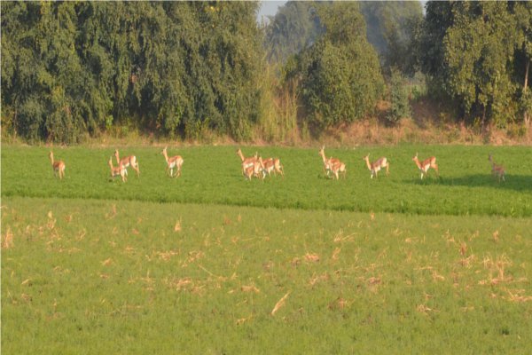 हिरनों के झुंड जंगलों के कम होने के कारण खेतों में पानी और भोजन की तलाश में आते हैं। खेतों में चलने वाले ट्यूबवेलों से इन्हें पानी मिल जाता है। जिसके चलते कई बार हिरन कुत्तों का शिकार भी हो जाते हैं।