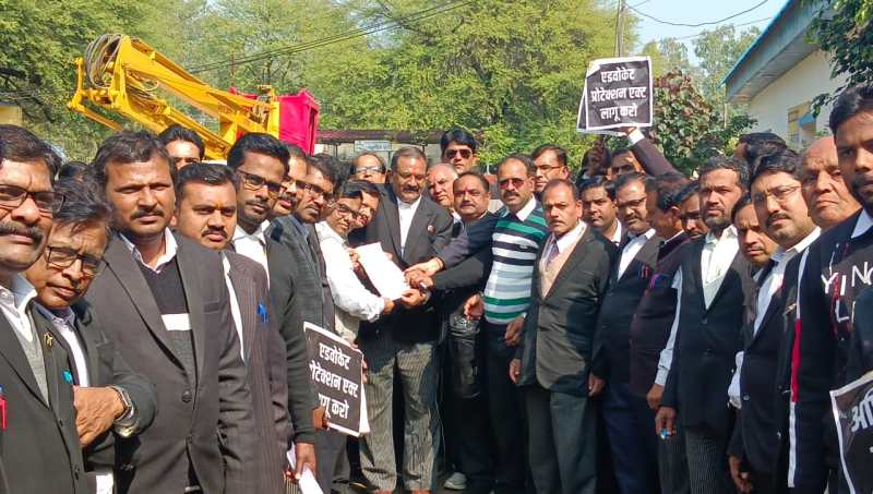 बीना. अधिवक्ताओं के कल्याण व सुरक्षा के लिए काम करने वाले अखिल भारतीय संयुक्त अधिवक्ता मंच के तत्वावधान में मंगलवार को कोर्ट परिसर में सभी अधिवक्ताओं ने सांकेतिक रूप से शांतिपूर्ण धरना दिया। कार्यक्रम में अखिल भारतीय संयुक्त अधिवक्ता मंच राष्ट्रीय अध्यक्ष चंद्रकुमार वलेजा भी शामिल हुए। उन्होंने अधिवक्ताओं को संबोधित करते हुए कहा कि सरकार को एडवोकेट प्रोटेक्शन एक्ट लागू करने के लिए समय-समय पर प्रदर्शन, ज्ञापन आदि दिए गए हैं। सरकार ने एक्ट लागू करने के लिए आश्वासन भी दिया था, लेकिन अभी तक लागू नहीं किया गया है, जिससे फिर सरकार को याद दिलाना पड़ रहा है। उन्होंने कहा कि अधिवक्ता मंच की ओर से लगातार यह मांग की जा रही है। प्रदेश में कई अधिवक्ताओं पर जानलेवा हमले हो रहे हंै और पैरवी न करने की चेतावनी देकर जान से मारने की धमकी दी जा रही है। अपर सचिव विधि विभाग को कई बार स्मरण पत्र भी लिखा गया, लेकिन अभी तक इस संबंध में कोई तथ्यात्मक जानकारी नहीं दी गई है कि यह कब लागू होगा। इस वजह से अखिल भारतीय संयुक्त अधिवक्ता मंच क्रमिक धरना प्रदर्शन के लिए मजबूर हैं। शहर अध्यक्ष राहुल माथुर ने बताया कि अधिवक्ता मंच अधिवक्ताओं के हित की लड़ाई लगातार लड़ रहा है। इस संबंध में मंगलवार को धरना प्रदर्शन के बाद सीएम के नाम तहसीलदार को ज्ञापन सौंपकर एडवोकेट प्रोटेक्शन एक्ट लागू करने की मांग की गई है।