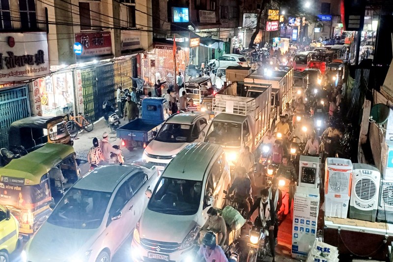 सागर. शहर की बिगड़ैल यातायात व्यवस्था किसी से छिपी नहीं है। शुक्रवार की शाम राधा तिराहा से पुरानी गल्ला मंडी की ओर, अप्सरा टॉकीज और कटरा मस्जिद को जाने वाले मार्गों पर करीब डेढ़ घंटे यातायात बाधित रहा। यहां पर सैकड़ों वाहन चालक जाम में फंसे रहे। वाहन रेंग-रेंगकर आगे बढ़ने के लिए मजबूर दिखे। जाम में फंसे वाहन चालकों ने ही अपने स्तर पर यातायात को बहाल करने का प्रयास किया, क्योंकि मौके पर एक भी पुलिसकर्मी नहीं था। डेढ़ घंटे तक लोगों के परेशान होने के बाद जब जाम खुलने वाला था, तब यातायात के जवान मौके पर पहुंचे।