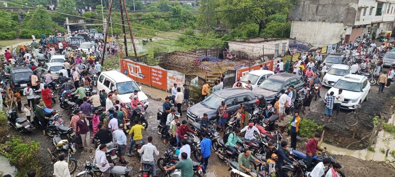 शनिवार की दोपहर में करीब दो घंटे हुई भारी बारिश से अंडरब्रिज में करीब तीन फीट पानी बह रहा था। इसी बीच कुछ वाहन चालकों ने वाहन निकाल दिए, जिसमें पानी भरने से बंद हो गए। मोटर साइकिल, कार, ऑटो बंद होने से दोनों तरफ लंबा जाम लगा रहा है, जिससे तीन घंटे लोग परेशान हुए। इस दौरान जाम में एंबुलेंस सहित 100 डायल वाहन भी फंस गया था। पुलिस ने मशक्कत कर करीब साढ़े तीन घंटे बाद वाहनों को निकलवाया। इस बीच जो बहनें भाईयों को राखी बांधने जा रही थीं, वह भी जाम में फंसी रहीं और देरी से पहुंच सकीं। कुछ महिलाएं सिर में सूटकेश, बैग रखे हुए रेलवे पटरियों से निकलीं।