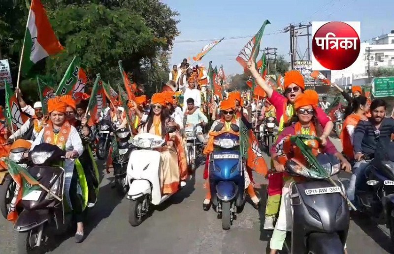 VIdeoःकमल संदेश यात्रा में जब सांसद आैर विधायक लेकर निकले बाइक ताे दिखा कुछ एेसा नजारा