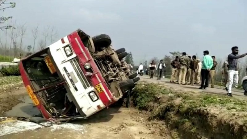 दुर्घटना मंगलवार दाेपहर काे हुई। प्रत्यक्षदर्शियों के अनुसार बस के आगे दाे बाइक चल रही थी। इनमें से आगे वाली बाइक पीछे वाली बाइक काे रस्सी से खींच रही थी। अचानक पीछे वाली बाइक का चालक अपना संतुलन खाे बैठा और गिर गया। इसी बाइक सवार काे बचाने के चक्कर में बस चालक ने जब बस काे सड़क से नीचे उतारने की काेशिश की ताे वह पलट गई।