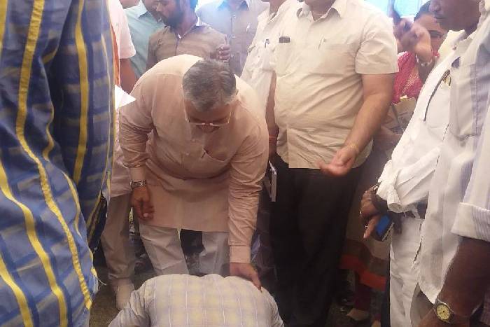 दिव्यांग ने पकड़ लिए मंत्री और सांसद के पैर