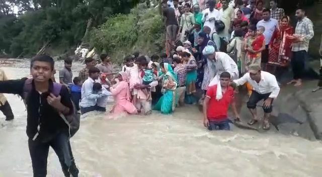 पानी के तेज बहाव में फंसे श्रद्धालुओं को जेसीबी की सहायता से बाहर निकाला गया, जब तेज बहाव में वाहन नहीं चल पाए तो जेसीबी मंगाई गई और जेसीबी में बैठा कर श्रद्धालुओं को पानी से बाहर निकाला गया। इसके साथ ही मानव श्रृंखला बनाकर भी श्रद्धालुओं को पानी से बाहर निकाला गया। दोपहर बाद पानी कम हो जाने की वजह से श्रद्धालुओं ने राहत की सांस ली। दोपहर बाद भूरा मंदिर से एक बार फिर श्रद्धालुओं के जत्थे मुख्य मंदिर के लिए रवाना हुए।