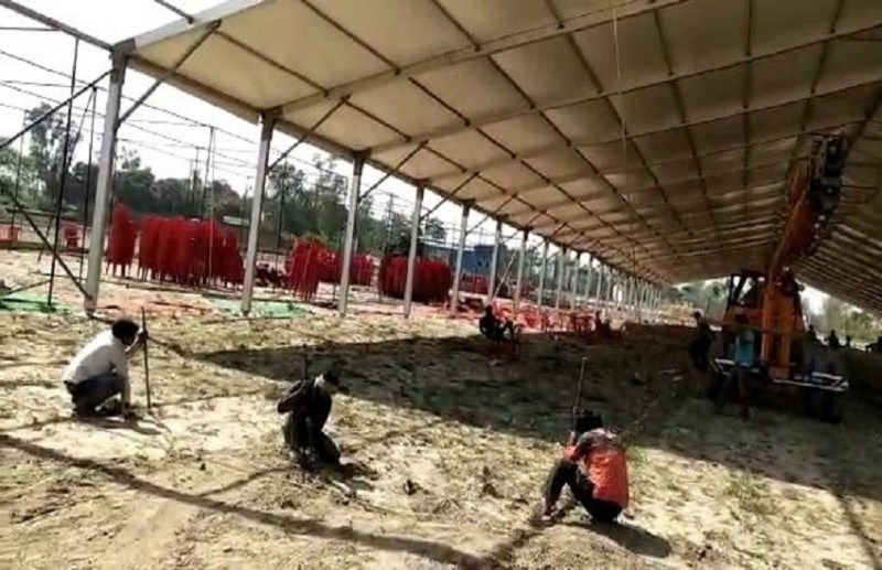 नानाैता में प्रधानमंत्री की जनसभा के लिए एंटी फायर शीट से विशाल पंडाल बनाया जा रहा है। इसकी निगरानी खुद एनएसजी की टीम कर रही है। यहां जेसीबी और क्रेन की मदद से पंडाल काे तैयार किया जा रहा है। इसकी तस्वीरे हम आपकाे दिखा रहे हैं इस खबर के साथ वीडियाे में आप देख सकते हैं किस तरह से नानाैता में एनएसजी टीम की देखरेख में पंडाल तैयार किया जा रहा है।