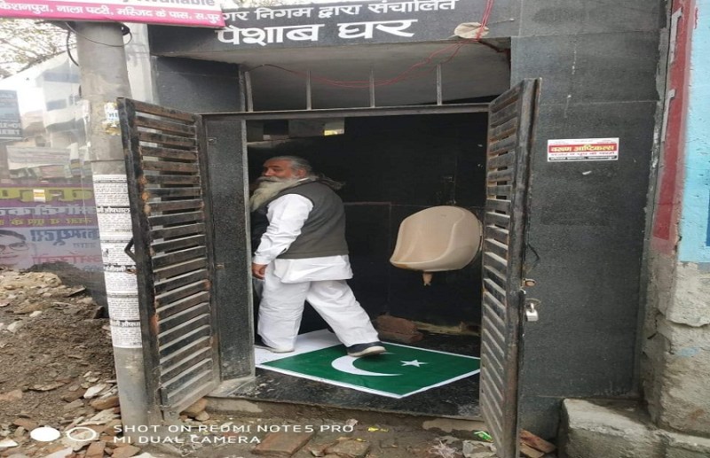 सहारनपुर। यूपी के सहारनपुर में पाकिस्तान की हरकत से नाराज लोगों ने सार्वजनिक शौचालय में पाकिस्तान का झंडा बिछा दिया है। अब लोग इस झंडे के ऊपर से होते हुए पेशाब कर रहे हैं। पुलवामा अटैक के बाद जहां पूरी दुनिया में पाकिस्तान को नसीहत मिल रही है वहीं भारत में इस घटना का पुरजोर विरोध हो रहा है। भारतीय दुखी होने के साथ-साथ बेहद गुस्से में हैं। भारतीय युवा बिना देरी किये पाकिस्तान पर हमला करने की बात कह रहे हैं। गुस्साए लोगों का कहना है कि भारतीय सेना को पाकिस्तान पर हमला कर देना चाहिए। यही वह समय है जब पाकिस्तान को मुंहतोड़ जवाब देना चाहिए। लोग अलग-अलग तरीके से पाकिस्तान का विरोध कर रहे हैं। कोई पुतले जला रहा है तो कोई झंडा जला रहा है तो कोई पाकिस्तान मुर्दाबाद के नारे लगा रहा है। उत्तर प्रदेश के सहारनपुर में अलग ही नजर देखने को मिला है। यहां नगर निगम की ओर से घंटाघर के पास नाला पटरी पर स्थित टॉयलेट में पाकिस्तान का झंडा बिछा दिया गया है। अब इस टॉयलेट में जो भी पेशाब करने के लिए जा रहा है। वह पहले इस झंडे के ऊपर से चलकर जाता है। पाकिस्तान के झंडे की यह दुर्दशा यहां लोगों को खूब भा रही है। यहां हर धर्म और जाति के लोग इस झंडे को पैरों से कुचलकर इसके ऊपर से होते हुए पेशाब घर में जा रहे हैं।