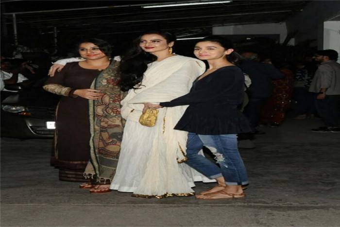 बॉलीवुड एक्ट्रेस विद्या बालन की फिल्म 'बेगम जान' अगले हफ्ते यानी 14 अप्रैल को सिनेमाघरों में रिलीज होने वाली है। रिलीज से पहले फिल्म की स्क्रीनिंग मुबंई में रखी गई थी। इस स्क्रीनिंग में रेखा, आलिया भट्ट, महेश भट्ट और विद्या बालन के पति सिद्धार्थ रॉय कपूर पहुंचे थे।