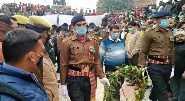 सहारनपुर ( Saharanpur ) शहीद हुए सहारनपुर के लाल निशांत का पार्थिव शरीर साेमवार काे पूरे राजकीय सम्मान के साथ पंचतत्व में विलीन हाे गया। रविवार रात काे जब ऩिशांत का पार्थिव शरीर उनके घर पहुंचा ताे परिवार में काेहराम मच गया। साेमवार सुबह अंतिम यात्रा में मानाें आधा शहर उमड़ पड़ा। लाेगाें की आंखाें में आंसू थे ताे चेहरों पर गुस्सा भी साफ दिखाई दिया। अंतिम यात्रा में चल रहे लाेग भारत माता की जय-जयकार कर रहे थे और अपने गुस्से का इजहार करते हुए पाकिस्तान मुर्दाबाद के नारे लगा रहे थे।