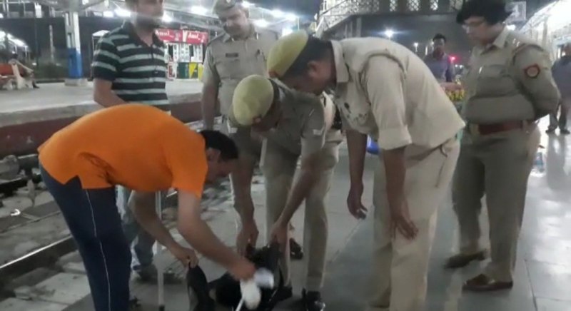 रेलवे स्टेशन पर चेकिंग करते पुलिसकर्मी