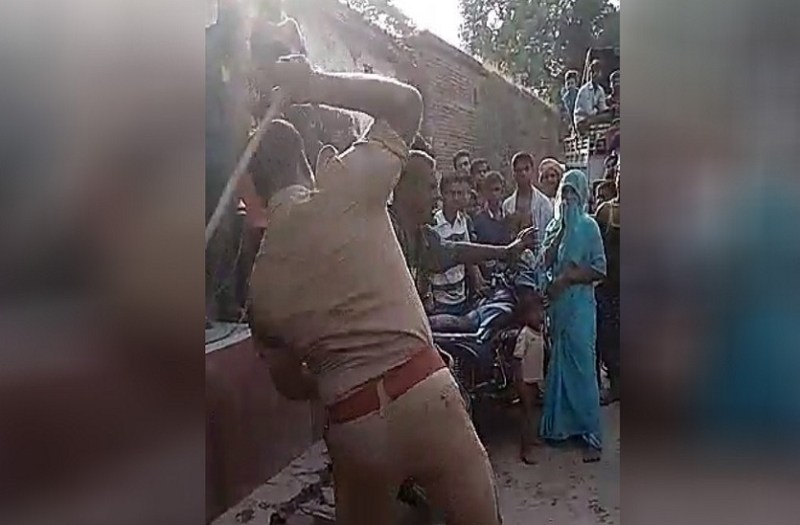 जीप का चालक पुलिसकर्मी इस युवक काे पीटते हुए नीचे गिरा लेता है आैर देखते ही देखते एक के बाद कई थप्पड़ जड़ देता है। पुलिस का खाैफ एेसा है कि युवक बेचारा कुछ नहीं बाेलता आैर चुपचाप पिटता रहता है। यह देख कुछ अन्य लाेग भी अपने प्रतिष्ठानाें से बाहर आ जाते हैं आैर यह देखने लगते हैं कि पुलिस किसकाे पीट रही है।