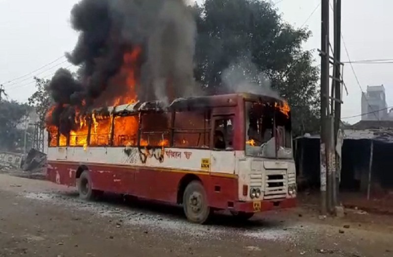 CAA Protest: संभल में सपा कार्यकर्ताओं ने की बसों में तोड़फोड़ और आग लगाई