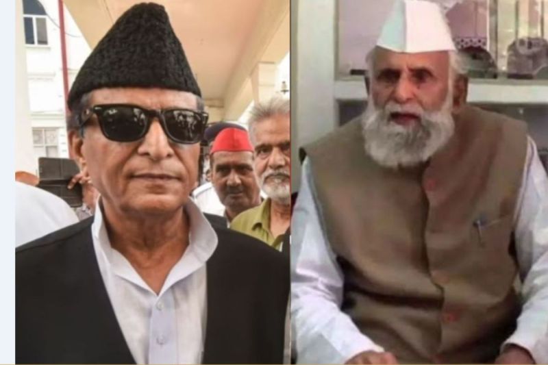 पूर्व मंत्री आजम खान (काले चश्मे में), संभल के सांसद शफीकुर्रहमान बर्क(दायें)