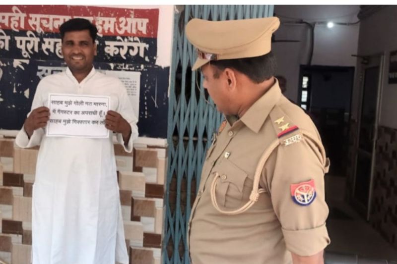 दरअसल,मंगलवार सुबह संभल के हयातनगर थाने में एक शख्स हाथ में लिए एक पोस्टर के साथ थाने में घुस आया। इस पोस्टर में लिखा था “साहब मुझे गोली मत मारना, मैं गैंगस्टर का अपराधी हूं।” मुझे गिरफ्तार कर लो। पोस्टर देख पुलिस कर्मियों ने उसे हिरासत में ले लिया।