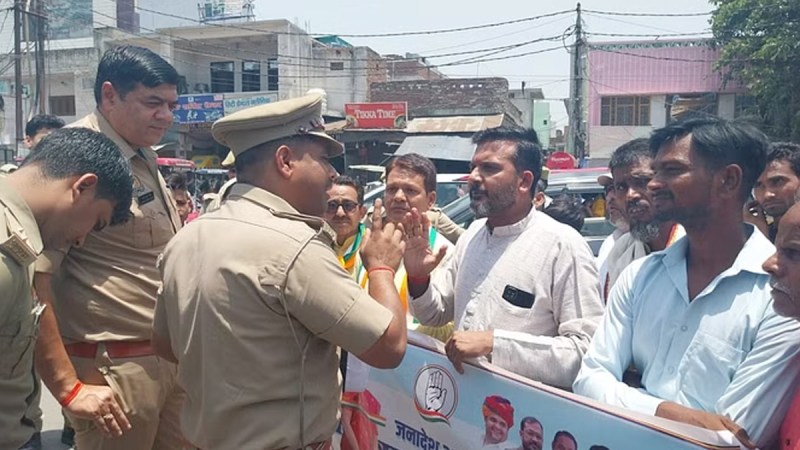 जिलाध्यक्ष विजय शर्मा ने बताया कि पुलिस ने मनमानी दिखाते हुए पदयात्रा को रोका है। जबकि कार्यक्रम की सूचना पहले ही पुलिस और प्रशासन के अधिकारियों को दे दी गई थी। कोतवाल पवन कुमार ने कहा कि अनुमति नहीं होने के चलते पदयात्रा को रोका गया है। कांग्रेसियों ने चौधरी सराय पुलिस चौकी के प्रभारी पर परेशान करने का आरोप लगाया। कहा कि चौकी प्रभारी ने एक दल के पक्ष में काम किया है। मतदान के दिन भी गठबंधन के कार्यकर्ताओं के साथ अभद्रता की थी।