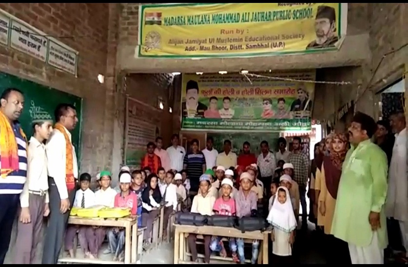 संभल के हयात नगर में चल रहे मोहम्मद अली जौहर मदरसे में सुबह सुबह वंदे मातरम के साथ साथ गायत्री मंत्र का जाप गूंज रहा है। मदरसे में पहुंचने के बाद पढ़ने वाले बच्चे अपने दिन की शुरुआत वंदे मातरम गीत और गायत्री मंत्र के उच्चारण के साथ करते हैं। मदरसे के बच्चोँ को गायत्री मंत्र कंठस्त भी हो चुका है। भारत माता की जय और देश के अमर शहीदों की जय के नारे बच्चों से लगवाए जाते हैं। मदरसे के छात्र व छात्राओं ने बताया कि मदरसे में सुबह आकर वंदेमातरम गीत, गायत्री मंत्र के साथ साथ कुरान की आयतें गाकर अपने दिन की शुरुआत करते हैं। छात्र मोहम्मद असद खान ने बताया कि उन्हें मदरसे में वन्देमातरम में कोई दिक्कत नहीं है।