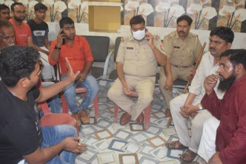 पुलिस ने आक्राेशित लोगों को कराया शांत